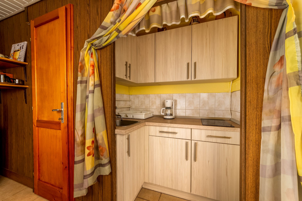 Gr.-floor: Living room with dining- and Kitchencorner, Shower with Toilette, two Doublebedrooms, roofed Terrace.